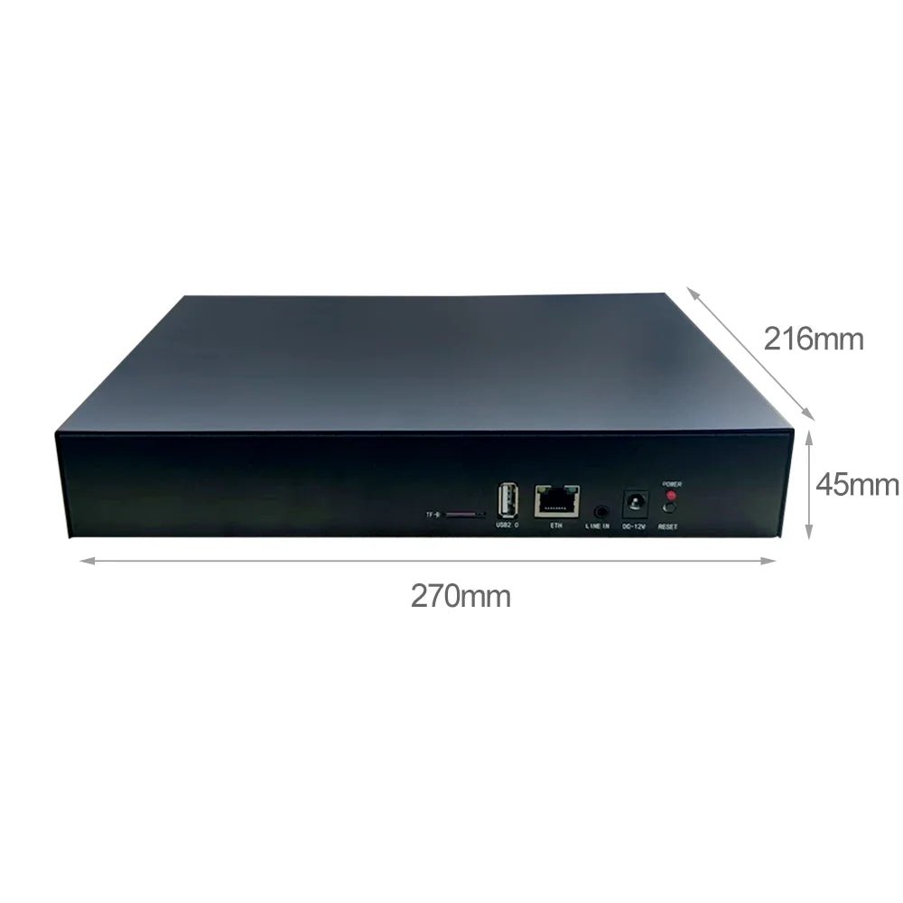 It can not only be used as an NVR to work independently locally, but also be used as a streamer for real-time streaming of surveillance video streams, meeting the functions of cloud storage and real-time live viewing of surveillance video streams.Customers can build their own surveillance video cloud storage and surveillance live broadcast systems according to their own needs.Supports one 3.5mm external independent audio input  and It supports HTTP/RTSP/RTMP/RTP/UDP-TS network input protocol and HTTP-FLV/RTSP/RTMP/UDP-TS/HLS/WS-FLV/WS-RAW/ONVIF network output protocol.