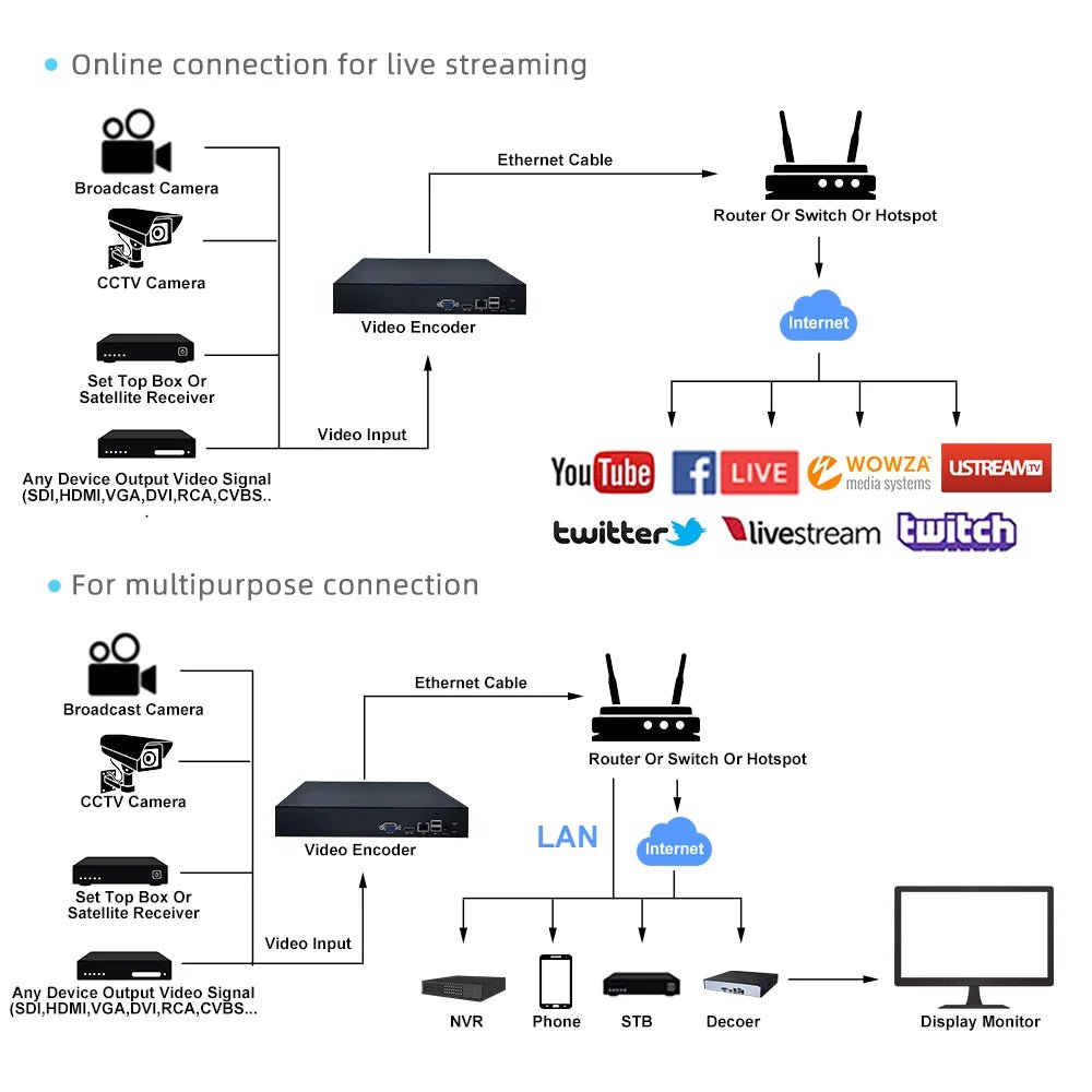 Widely used in live broadcast, digital signage, multimedia display, hotel IPTV system, network video conference, network teaching, online TV, live broadcast of large event party.