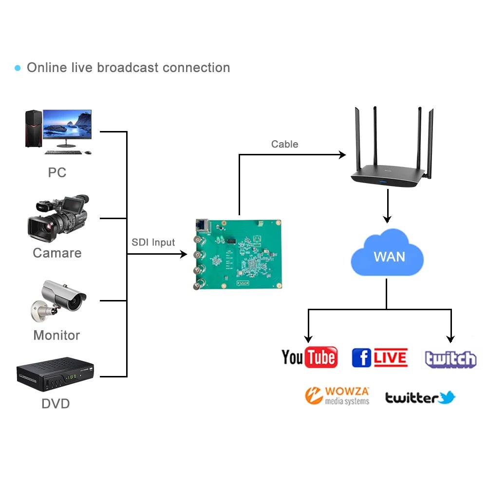 It supports 4 SDI video streams and 8 network video streams, and each SDI video stream can output 2 sub-streams. It supports H.264/H.265 video coding format. Its high integration and cost-effective designs make it widely applied in hotel TV systems, school teaching, live broadcasting, etc. You can further develop applications on the basis of this coding board. We support customized product services including product functions, styles, logo , etc., Welcome to consult for any customer services at any time.