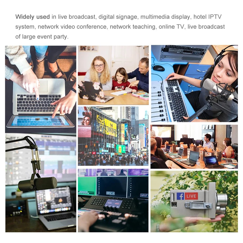 3. Gigabit network interface, can encode 8-channel network video stream, support DHCP protocol, http, UTP, RTSP, RTMP, RTMPS, SRT, RTP, ONVIF and other protocols.