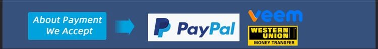 Shipping methods: FedEx, UPS, DHL, TNT, EMS and other international express shipping are supported. normally, it takes 3-7 days from China to you, we will choose the best way for you based on our historical data to ensure that the package is received safely and smoothly. We support PayPay, T/T, Western union,Veem and other payment methods.