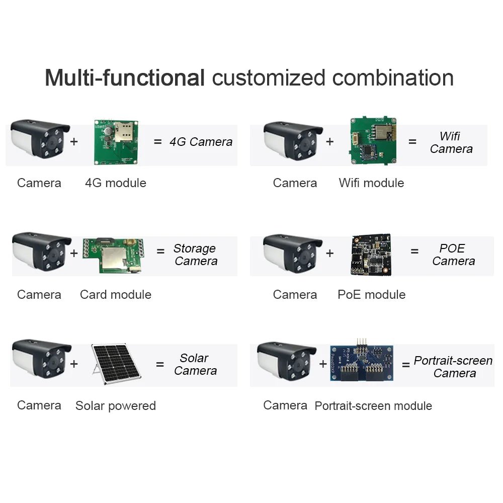 Wired and 4G versions – The camera supports wired and 4G internet connection, card without memory, or 32GB,64GB,128GB SD card built into the camera is optional.